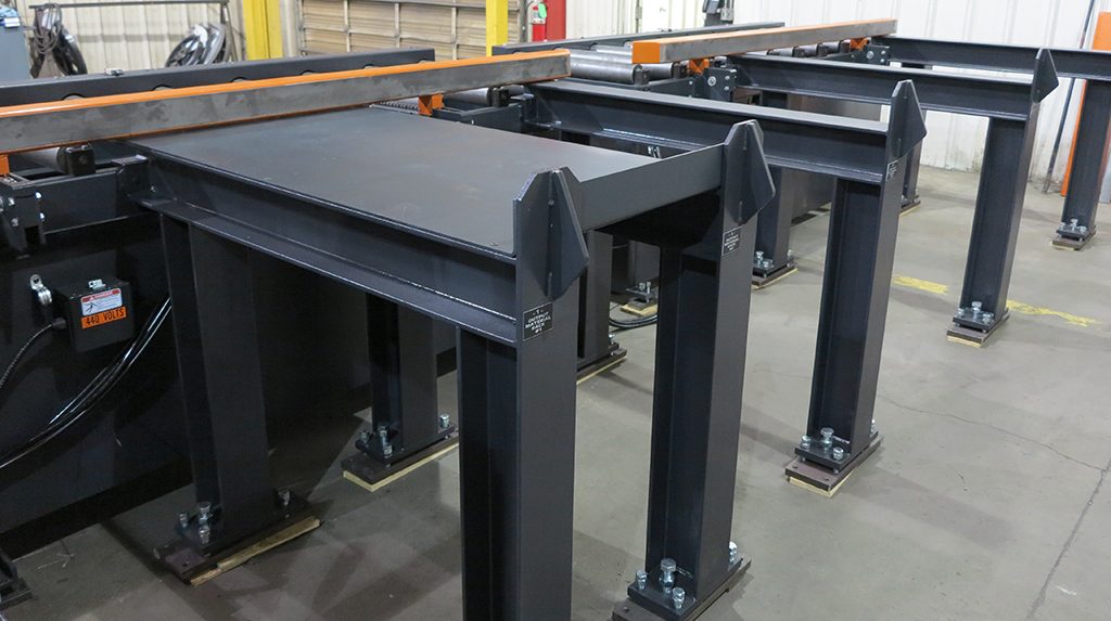 Built for maximum weight and tough environments. Stage IV Conveyors are offered as either an idle conveyor or a powered conveyor. Roller Size: 6” – 8” diameter x .50” wall DOM tubing on 8”, 16” or 36” Roller Centers (Roller Size and Width dependant on Saw Model. With widths varying from 29”, 34″, 40”, 46″, […]